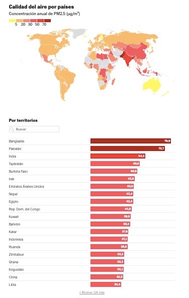 - Bangladés, Pakistán e India muestran la peor calidad del aire.