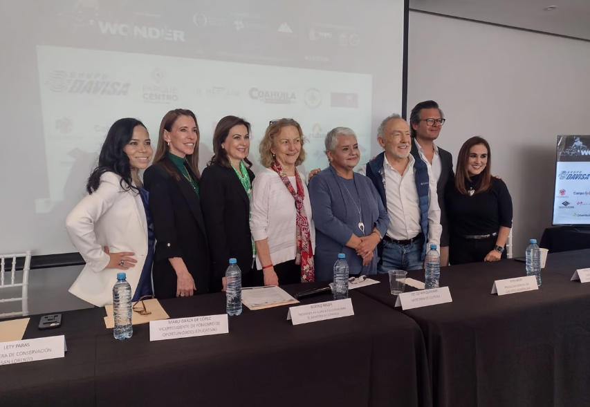 La rueda de prensa estuvo encabezada por Esther Quintana, Secretaria de Cultura; Beatriz Arizpe, Presidente de Alianza Educativa para el Bienestar Coahuila; al igual Maru Garza de López , Vicepresidente de Fomento de Oportunidades Educativa.