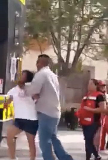 «No la estén jalando, no seas bañada», se escucha decir a algunas mujeres, mientras el hombre, empuja y aparta de la riña a la mujer, quien iba acompañada de una niña.