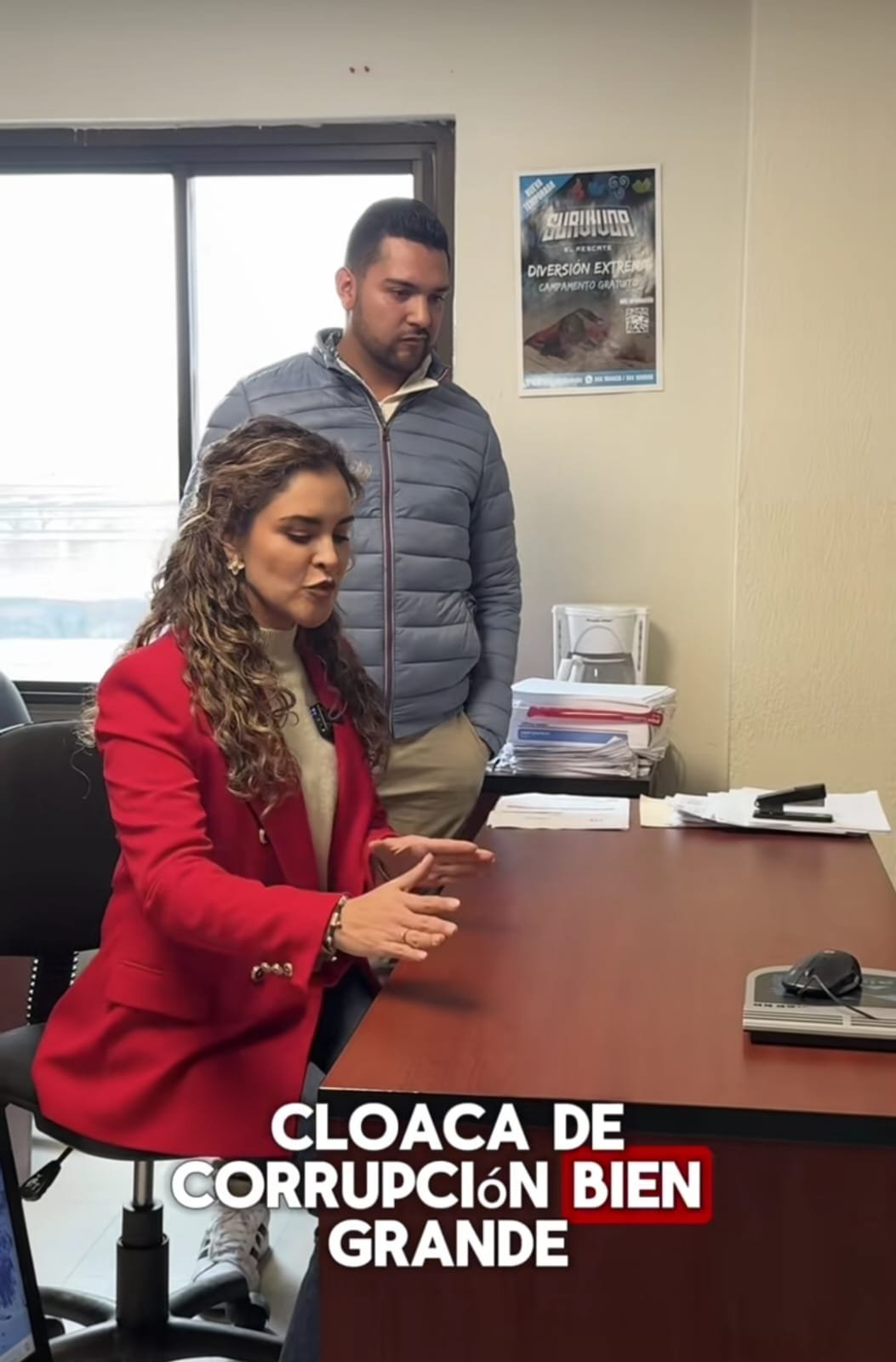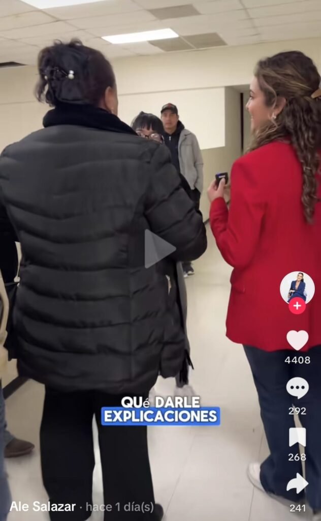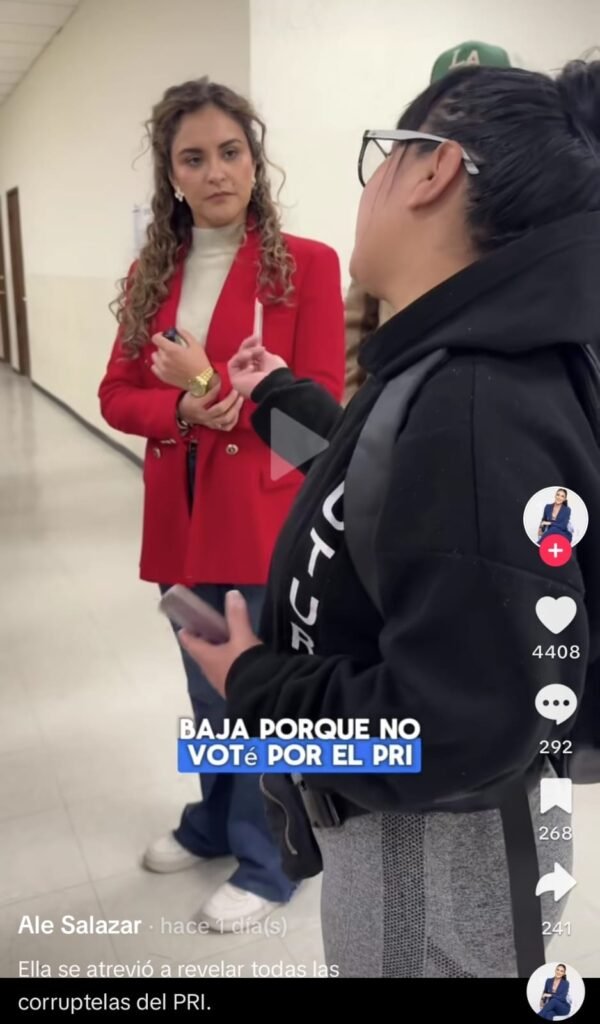 “Pero es que no tendría que ser algo privado si no están haciendo nada malo, entonces porqué ocultar el nombre de las líderes… Mira, quiero saber por qué se está utilizando como triangulación a las presidentas de colonias y porqué se les está quitando el apoyo si es un apoyo universal que debería dar el gobierno estatal. Yo venía por la información, ya vi que no nos la van a dar, ya vi que todos nos la están negando, aunque la conocen, y ya destapamos una cloaca de corrupción bien grande, porque en el país entero se va a saber que el gobernador está entregando los apoyos únicamente a los simpatizantes del PRI”, palabras de Ale Salazar con una trabajadora del edificio.