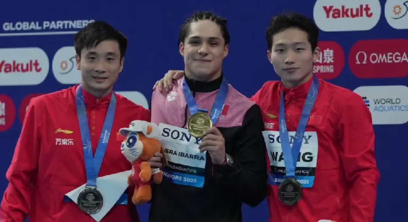 Osmar Olvera se corona campeón mundial en Singapur al ganar el oro en trampolín de 3m y vencer a los clavadistas chinos. Además, suma tres medallas de plata en el Mundial de Deportes Acuáticos 2025.