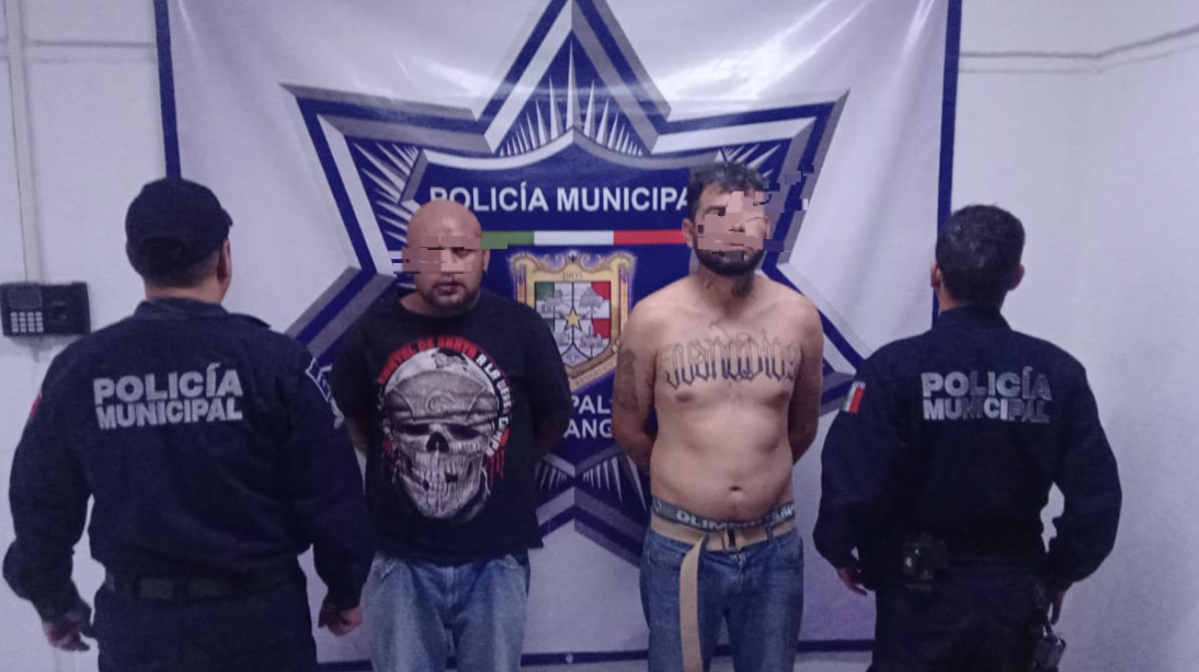 Elementos de la Policía Municipal de Gómez Palacio lograron la detención de dos hombres que asaltaron una tienda de conveniencia en la colonia Hamburgo, después de una intensa persecución.