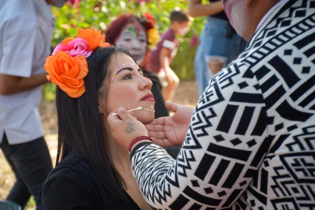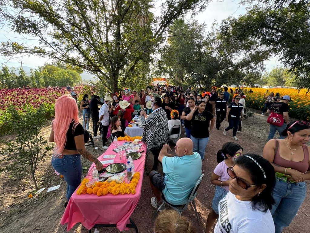Familias y visitantes disfrutaron de una jornada llena de música en vivo, coloridas catrinas, muestras gastronómicas y actividades artísticas, además de un servicio de maquillaje y sesiones fotográficas entre los campos de cempasúchil y mano de león, flores emblemáticas de la temporada.