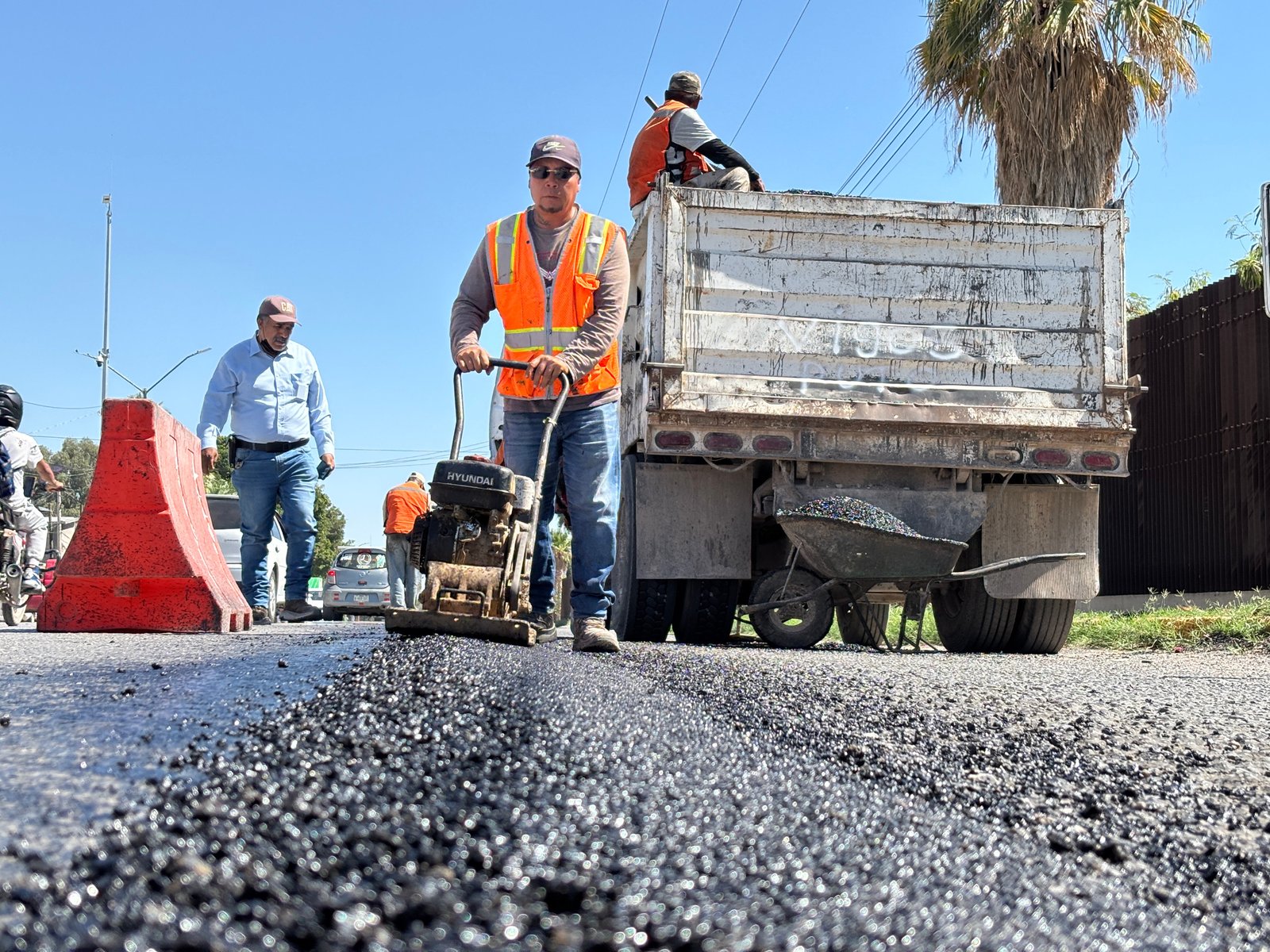 Galván Camacho destacó que el bulevar Forjadores es una de las vialidades con mayor flujo vehicular en la ciudad, por lo que la intervención responde a la instrucción de la alcaldesa de atender de manera puntual las necesidades de movilidad y conservar en óptimas condiciones las principales rutas de acceso.