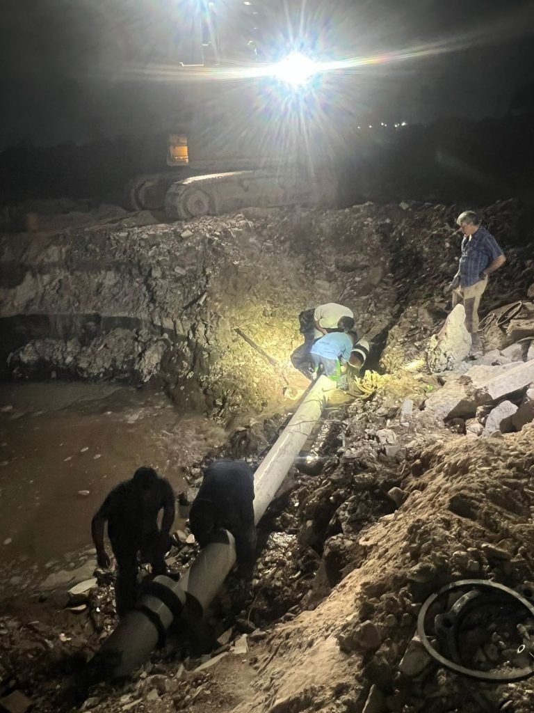 “Estamos trabajando para concluir la reparación este martes. Una vez finalizada, se comenzará a llenar y presurizar la red para restablecer el servicio”, explicó Uc Nájera.