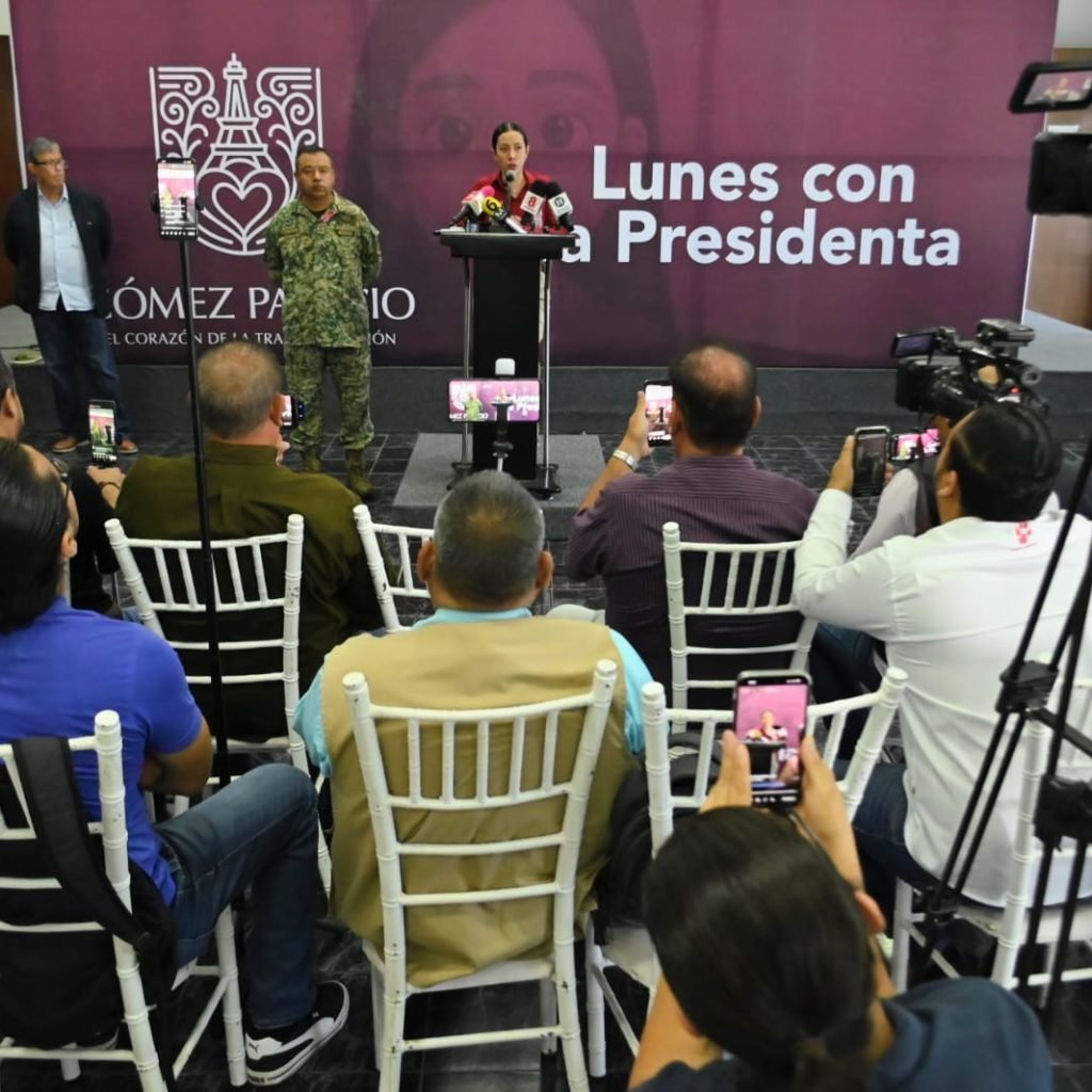 Gómez Palacio, Dgo.– La alcaldesa Betzabé Martínez Arango lamentó los hechos violentos registrados este fin de semana y reafirmó su compromiso con la seguridad e integridad de las familias del municipio, durante el encuentro con medios “Lunes con la Presidenta”.