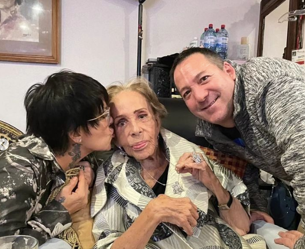 En las instantáneas, la actriz de 94 años aparece sentada junto a Alejandra y Enrique, luce sonriente y apapachada por sus hijos, sin embargo, para varios cibernautas se ve cansada y no es su mejor foto como para que circule en redes: «¡Qué barbaridad verla así! Déjenos con la imagen de Diva».