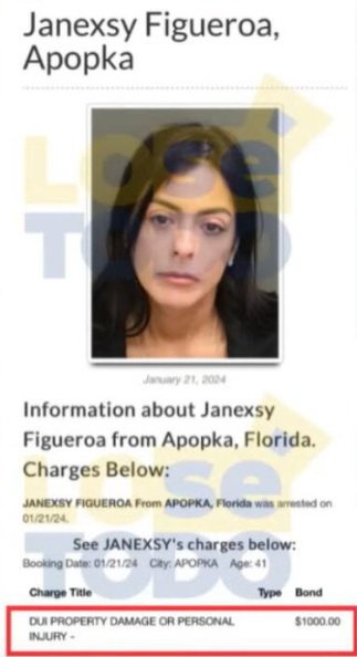 De acuerdo con información proporcionada por el presentador Fernán Vélez en el programa ‘Lo Sé Todo’, durante la emisión del 25 de enero, Figueroa, de 41 años, enfrenta cargos «por daños a la propiedad privada» y Driving Under Influence (DUI), delito por conducir intoxicado.