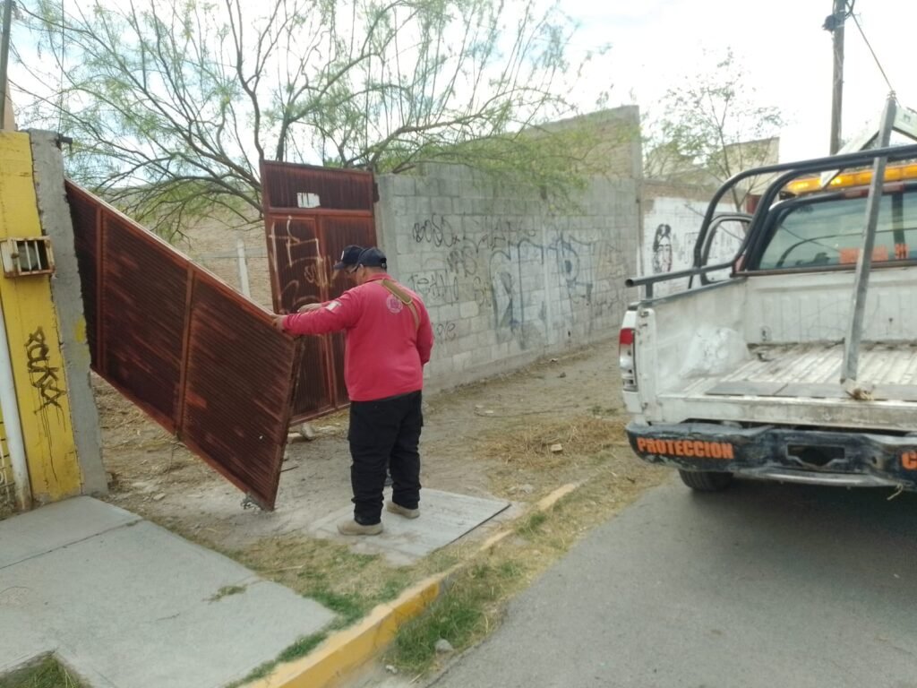Más tarde, a las 15:40 horas, en la zona Centro, se recibió un llamado de emergencia sobre un portón que estaba a punto de caer en la intersección de las calles Cuauhtémoc, Aquiles Serdán y Zaragoza. Los bomberos aseguraron la estructura con alambre para prevenir un accidente.