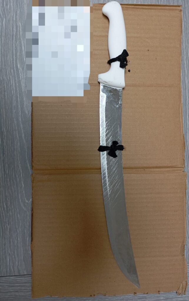 Tras asegurar al individuo, se procedió a la revisión correspondiente, encontrando en su poder un cuchillo carnicero de 25 centímetros de largo con un mango de plástico color blanco. Los agentes informaron a Rubén ‘N’ de su detención, procediendo a trasladarlo y ponerlo a disposición del Ministerio Público, donde se determinará su situación legal y los cargos que enfrentará.