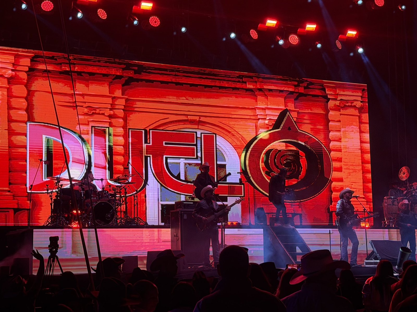 Al apagarse las luces, el público reaccionó de inmediato. Grupo Duelo apareció entre gritos y celulares en alto. Óscar Iván Treviño tomó el micrófono y abrió la presentación con algunos de los temas más conocidos de la agrupación.