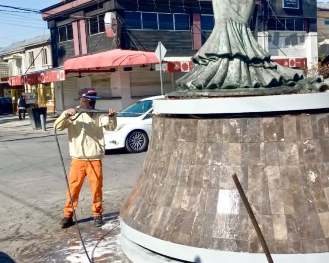 Torreón, Coahuila.– Como parte de las acciones encaminadas a mejorar la imagen urbana, la Dirección de Servicios Públicos Municipales de Torreón, a través del programa La Ola, intensificó las labores de limpieza y mantenimiento en los monumentos históricos de la ciudad.