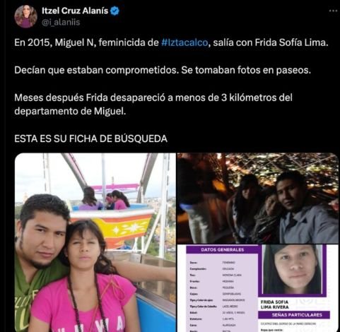 En medio de esta escalofriante revelación, la historia de Frida Sofía «N» ha resurgido. Itzel Cruz Alanís, periodista de NMasdio, compartió la ficha de búsqueda de una joven desaparecida en 2015, supuestamente vinculada al presunto feminicida.