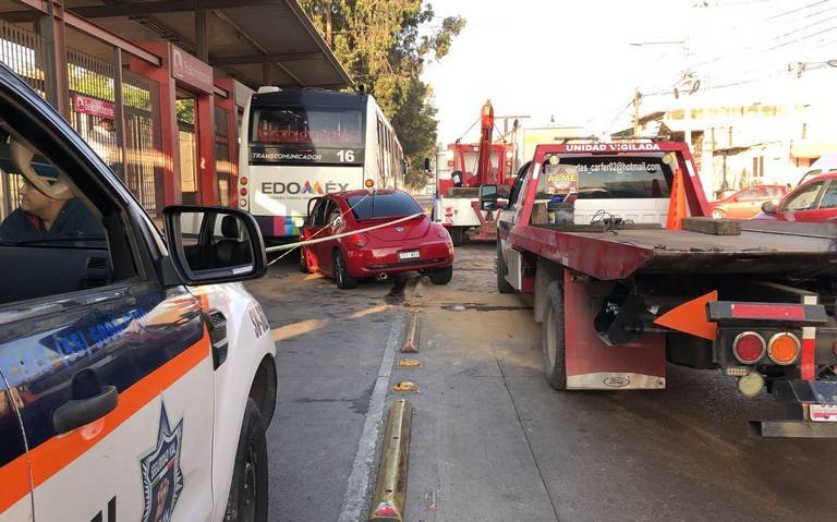 Los hechos se registraron muy temprano este jueves, cuando aparentemente el conductor de un Volkswaggen Beetle color rojo, con placas de la Ciudad de México, debido al exceso de velocidad perdió el control del auto y se estrelló con la parte trasera de la unidad del Mexibús.