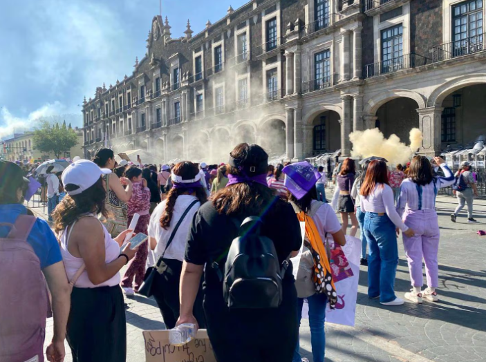 En medio de la movilización, algunas mujeres que participaron en la marcha del 8M denunciaron en redes sociales que fueron ‘gaseadas’ frente a Palacio Nacional. La periodista Lourdes Mendoza compartió un video que mostraba humo saliendo de las vallas metálicas que rodean la Catedral. Sin embargo, la Secretaría de Seguridad Ciudadana de la CDMX negó el uso de gas lacrimógeno, asegurando que solo portaron extintores que se utilizaron en conatos de incendio.