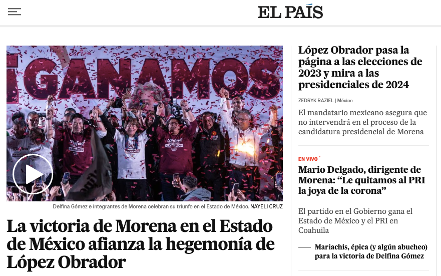 El diario El País señaló que a Morena no le ha tomado ni 10 años convertirse en la «fuerza política dominante» en México.