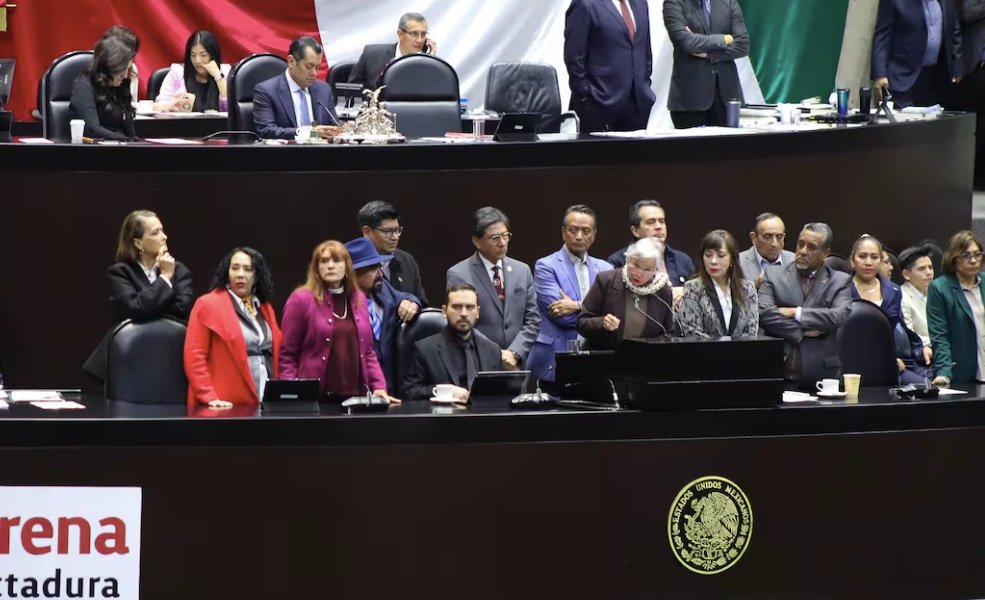 En el recinto legislativo, las protestas de la oposición se hicieron notar. Ante la abrumadora mayoría oficialista, los diputados del PAN, PRI y Movimiento Ciudadano recurrieron a manifestaciones simbólicas. Los panistas, vestidos de luto, instalaron lápidas y veladoras en el pleno. “Descanse en paz el Poder Judicial. Murió víctima del autoritarismo”, rezaban algunas pancartas. La diputada panista Annia Gómez incluso ironizó: “Les traje la Constitución, no para que la lean, porque ya sabemos que no la leen, para que le pongan un altar de muertos, porque la están matando”. Ante esto, Olga Sánchez Cordero, exsecretaria de Gobernación y diputada federal, respondió que la reforma no limita los derechos de la ciudadanía y recordó que la Ley de Amparo ya prohíbe amparos contra reformas constitucionales.