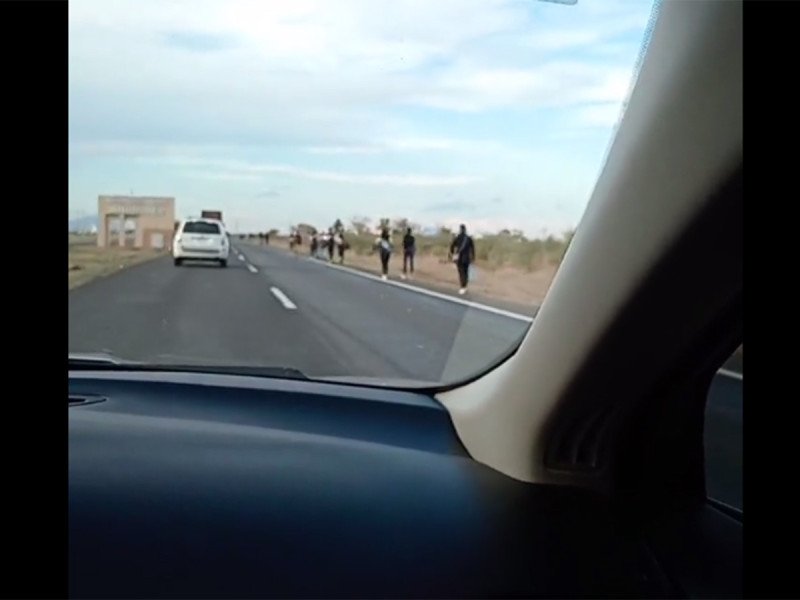 Ciudadanos mexicanos que transitan en sus vehículos por esta vía carretera compartieron por Internet las fotos donde se ve a los migrantes a un costado de la carretera, en camino a la frontera.