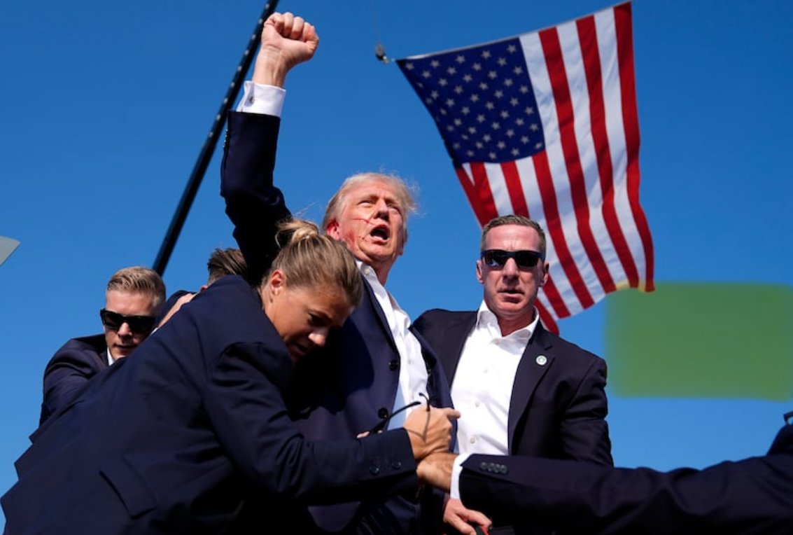 Butler, Pensilvania – El expresidente de Estados Unidos, Donald Trump, fue evacuado del escenario este sábado durante un mitin en Butler, Pensilvania, tras un aparente atentado. Trump llevaba solo unos minutos hablando cuando se escucharon unas pequeñas explosiones que sonaron como disparos lejanos. Acto seguido, Trump se llevó la mano derecha a la cara, como si hubiera recibido un impacto, y se desplomó, siendo cubierto inmediatamente por agentes del Servicio Secreto.