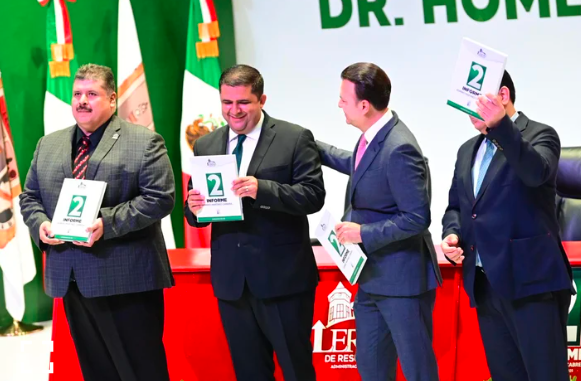 El viernes 30 de agosto, el alcalde de Lerdo, Homero Martínez Cabrera, presentó su Segundo Informe de Resultados en una Sesión Solemne de Cabildo, realizada en la sala Lic. Miguel Lerdo de Tejada, dentro de la Presidencia Municipal. Durante el evento, Martínez entregó a la síndica municipal, Alina Arlette Rivera Quiñones, en representación del Cabildo, la glosa que detalla el estado de la Administración Pública Municipal de Lerdo para el periodo del 1 de septiembre de 2023 al 30 de agosto de 2024.