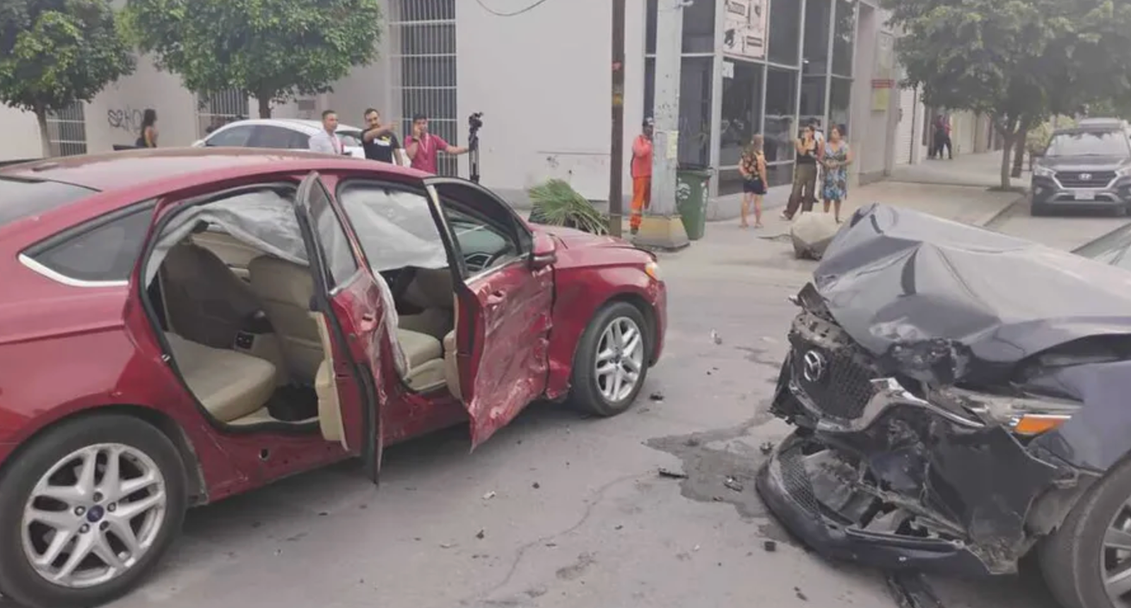 El percance ocurrió alrededor de las 17:45 horas sobre la avenida Juárez, cuando un Mazda 6 azul no respetó la luz roja del semáforo e impactó contra un Ford Fusion color cereza, en el que viajaban tres personas.