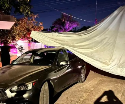 El choque ocurrió cuando el conductor, identificado como Carlos Eduardo ‘N’, de 51 años, subestimó la altura de su camioneta al intentar pasar por debajo de los toldos. Como resultado, la estructura metálica se derrumbó y cayó sobre un sedán que se encontraba estacionado, ocasionando daños considerables en la carrocería del vehículo.