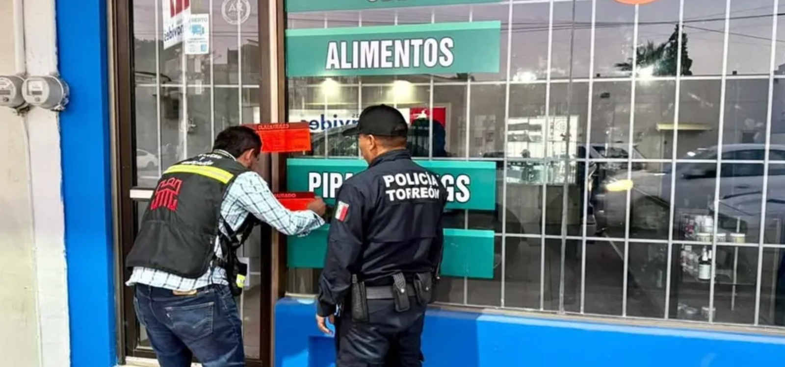 Torreón, Coah.- Derivado de un llamado a la Policía Municipal de Torreón, la Dirección de Inspección y Verificación Municipal realizó una diligencia que concluyó con la clausura de un establecimiento dedicado a la venta de productos derivados del cannabis, ubicado en la colonia Centro, al detectarse diversas irregularidades administrativas y sanitarias.