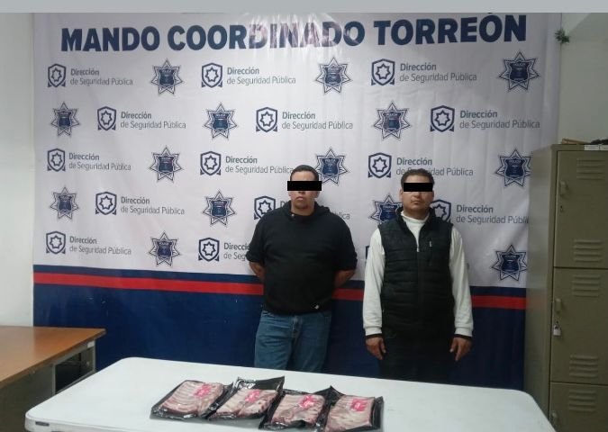 Durante un recorrido de vigilancia y prevención en la colonia Centro de Torreón, elementos de la Dirección de Seguridad Pública Municipal (DSPM) detuvieron a Juan Fernando ‘N’, de 37 años, y Germán ‘N’, de 35, por su presunta participación en el delito de robo con quebrantamiento de confianza. El hecho ocurrió el 21 de febrero a las 15:15 horas en un supermercado de la zona.