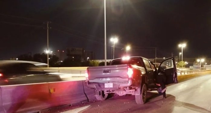 Torreón, Coah.- Durante la madrugada de este viernes 2 de mayo se registró un aparatoso accidente sobre el bulevar De La Nogalera, a la altura de la colonia Villa Florida en Torreón, donde el conductor de una camioneta tipo pickup perdió el control y chocó contra una serie de ballenas de concreto, dejando severos daños materiales.