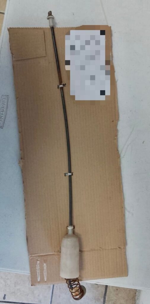 Tras escuchar el testimonio de la víctima, los elementos procedieron a detener al presunto agresor, notificándole los cargos en su contra. Además, durante el procedimiento, se le aseguró una varilla de acero de 50 centímetros de largo, que contaba con un resorte en uno de sus costados.