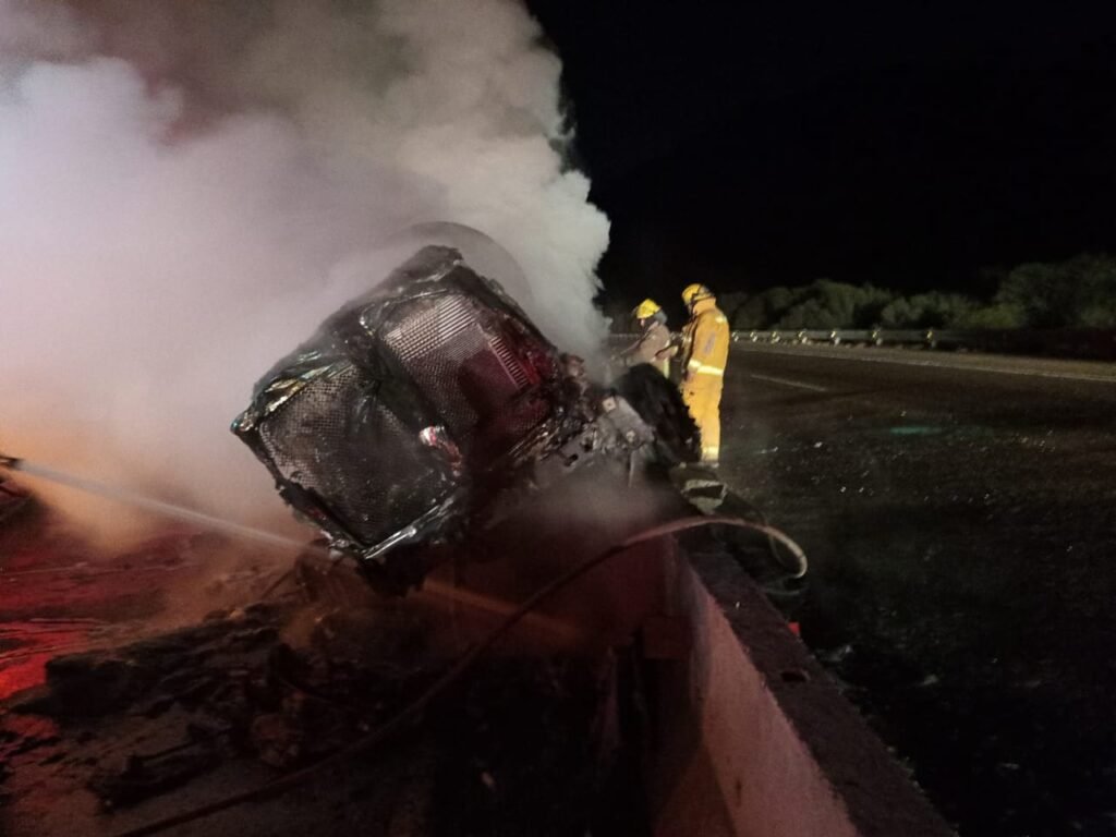 Un tráiler que transportaba aceite comestible de soya se incendió en la madrugada del domingo 19 de enero tras impactarse contra un muro de contención en el kilómetro 201 de la carretera León Guzmán-Durango. El incidente ocurrió alrededor de las 3:00 a.m., y las autoridades confirmaron que no hubo personas lesionadas.