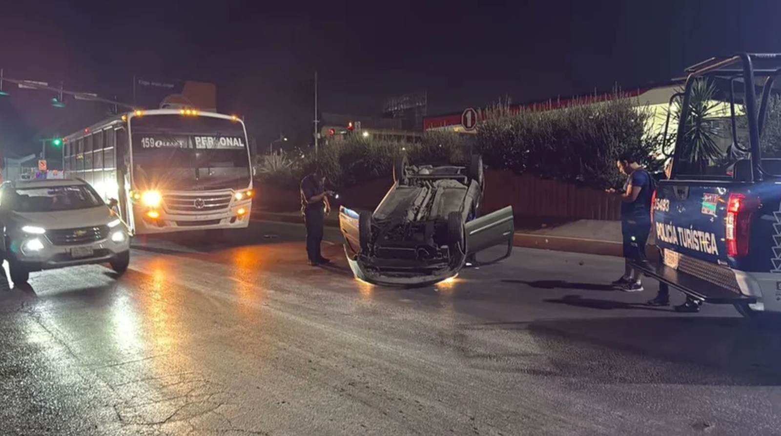 El vehículo quedó recostado sobre su toldo, bloqueando parte de la circulación. En un inicio se creyó que había impactado también a un camión de personal; sin embargo, elementos de Tránsito descartaron esta versión y permitieron al chofer retirarse.